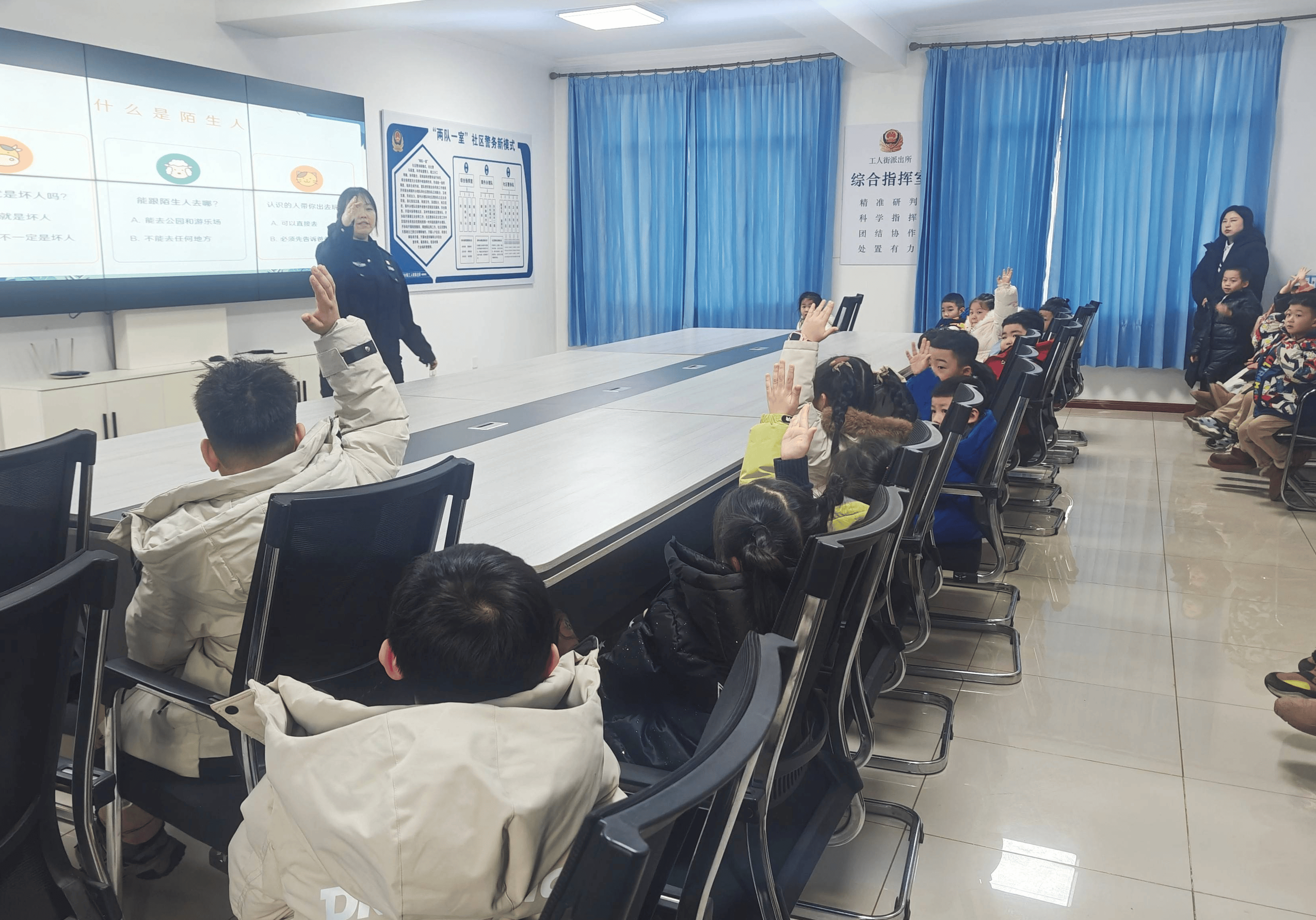 随后。率领孩子们一路唱起《小兔子乖乖》《伶俐宝物不上当》等儿歌,加强辖区长儿的平安防备认识,全力护航辖区青少年儿童安然健康成长。